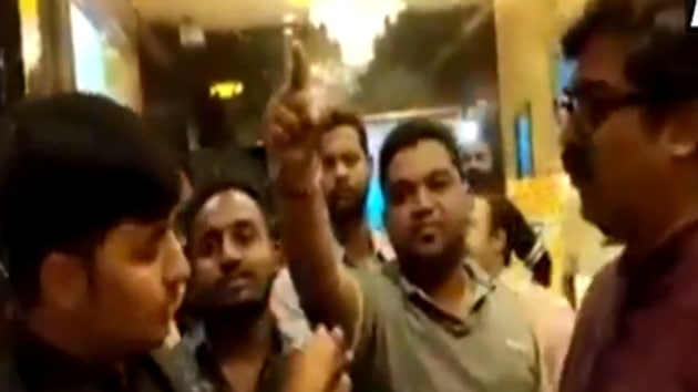 A video circulating online purportedly shows a dozen MNS workers barging into a PVR multiplex in Pine and slapping the assistant manager of the theatre.