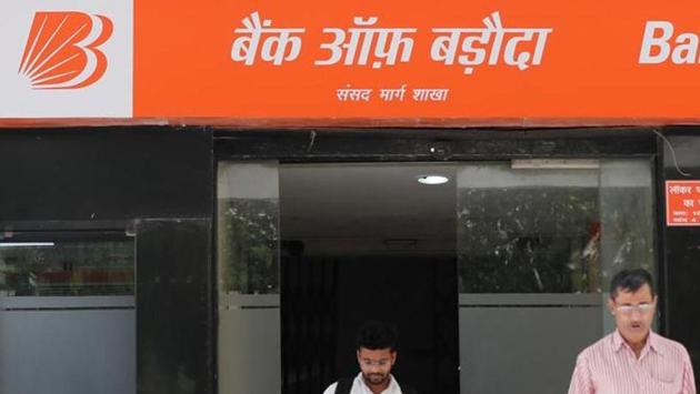 People walk out from Bank of Baroda in New Delhi. (REUTERS FILE PHOTO)