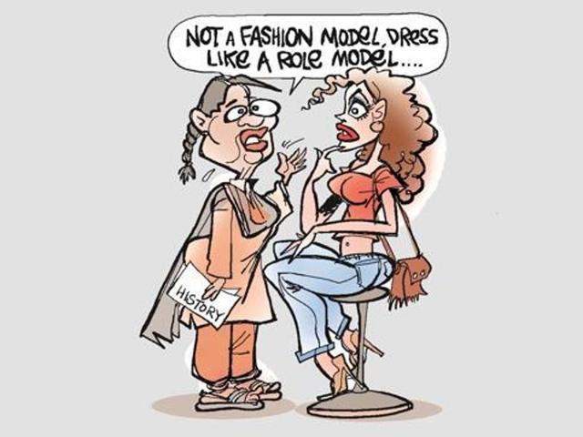 Top Haryana education department officials defended the order barring women teachers from wearing jeans, saying teachers were regarded as role models for students and should be dressed appropriately. (HT Illustration/Jayanto)