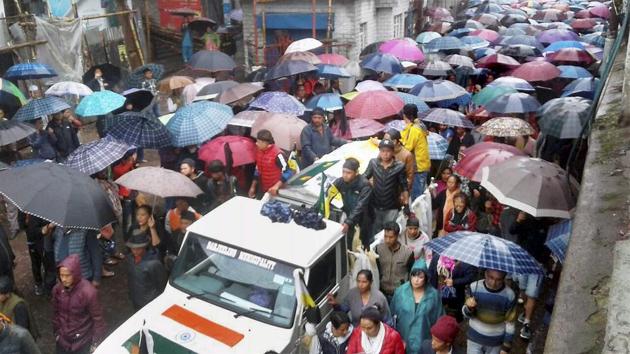 Thousands of people marched in funeral processions with the bodies of Tashi Bhutia, a meat shop owner who died at Sonada on Friday night, and Suraj Sundas and Samir Gurung in Darjeeling town.