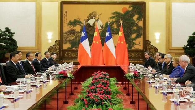 Chilean President Michelle Bachelet meets Chinese President Xi Jinping ahead of the Belt and Road Forum in Beijing. (Reuters)