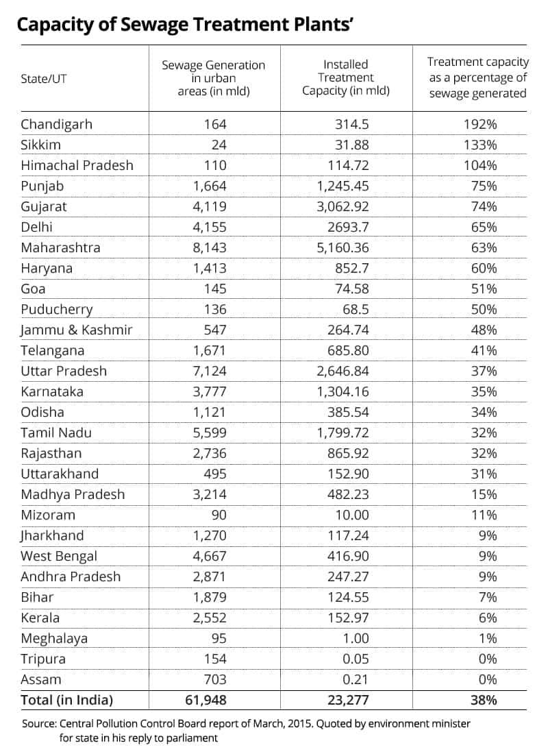 The other problem is that installed sewage treatment capacity maybe higher than the effective treatment capacity. Effective treatment of sewage also depends on the efficiency of the sewage treatment plant and if they are operational.