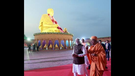 He and Mahant Swami Maharaj, the spiritual successor of Pramukh Swami, commenced the inauguration ceremony amid chanting of Vedic mantras from the Sant Dwar — a 380-feet-wide entrance gate honouring the India’s sages and saints.
