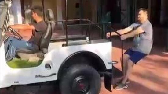 On Monday, the younger Yadav scion shared a video where he was pulling a jeep with his hands at his 10, Circular Road residence in the morning suggesting how a rigorous workout is part of his daily routine.