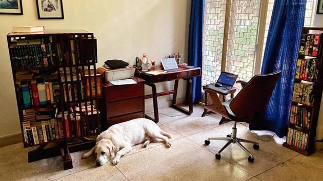 I’ve worked from home off and on over the past month, including one two-week period when I did not step out of home (not a quarantine; more a constraint necessitated by something else). I have the luxury of a study in a nice sunlit corner, good connectivity, a very quiet neighbourhood (April was mild, so I left the garden door open), and excellent company (as you can see from the photograph), but I hated it.