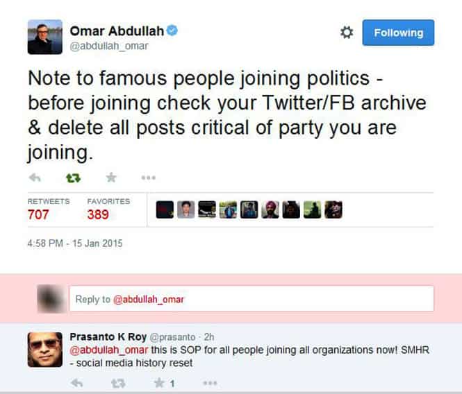 As Bedi posed for the cameras at the BJP's office, former Jammu and Kashmir chief minister Omar Abdullah advised her about 'Twitter history'.