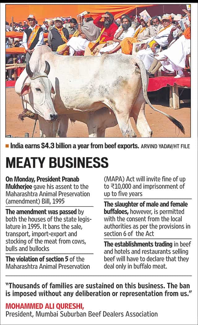Beef went off the menu in the BJP-ruled state as the President approved on Tuesday an amendment to a 1995 state law which brought the possession, sale or purchase of bulls, bullocks and calves under a slaughter ban that only covered cows before.