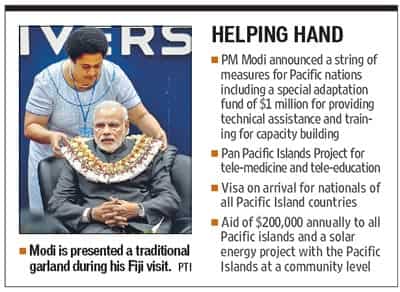 The first Indian PM to visit Fiji in 31 years, Modi had announced a $5-million fund to promote small business and village enterprises in the country whose 37% of the population is of Indian origin. He also offered a $70 million line of credit for a power plant.