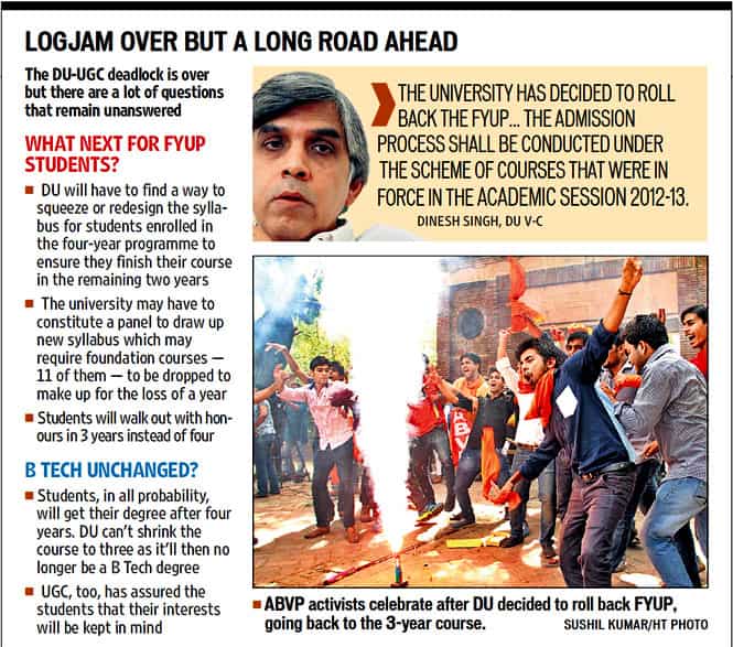 DU gives in, scraps FYUP; admissions to begin