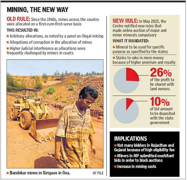 Earlier, since the 1960s, mines were allocated on a first-come-first-serve basis, but with frequent allegations of corruption and arbitrariness in the process, as noted by the MB Shah panel on illegal mining in the country. The idea behind the Mineral (Auction) Rules 2015 was to check corruption while also improving revenue for the states.