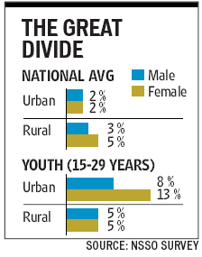 The NSSO also said the unemployment rate for youngsters was higher in urban areas than that in rural India.