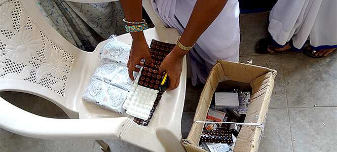 Government health workers ready with medicines. (Prasad Nichenametla/HT Photo)