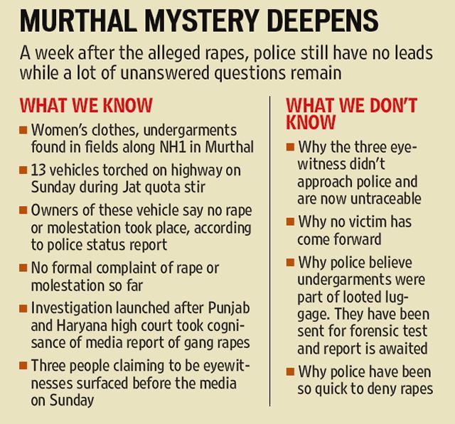 The mystery over alleged incidents of gang rape in Murthal during the Jat agitation deepened on Saturday with three men claiming to be witnesses — the first in the case — surfacing before the media and then going missing without approaching the police.