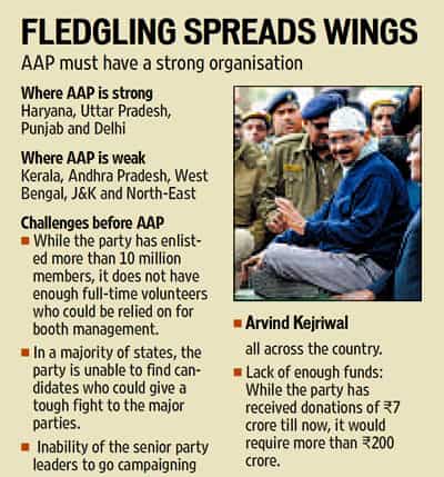 By announcing it would go national and contest more than 350 of the 543 Lok Sabha constituencies, has the Aam Aadmi Party (AAP) bitten more than it can chew?
