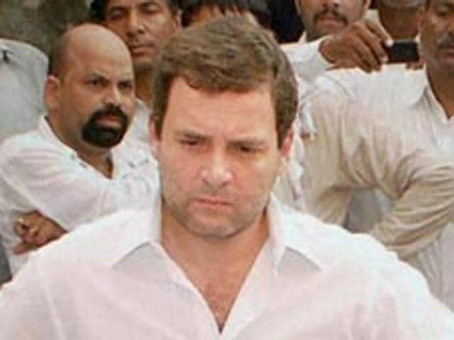 Congress vice-president Rahul Gandhi during a visit to Sunpedh village where a Dalit family's house was set on fire. (PTI)