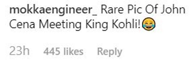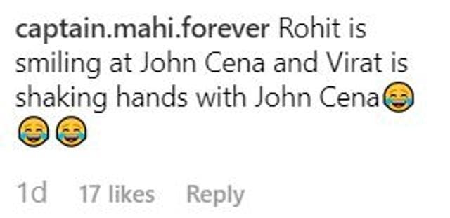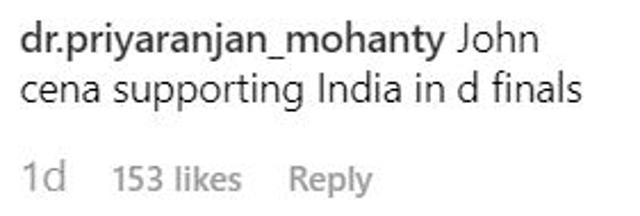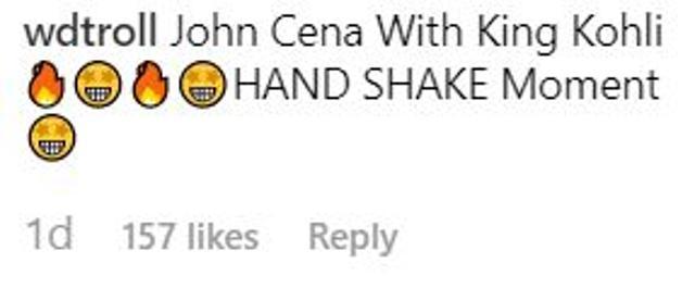 “John Cena shaking hands with our team captain but you just can’t see him,” says one Instagram user. “Appreciation accepted. Legend wishing another legend,” says another. “Yes John Cena India will certainly win,” posts a third.