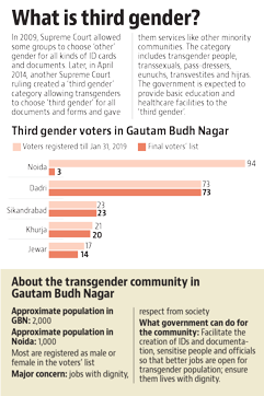 Just three third gender voters have registered in Noida ahead of the 2019 general elections and there are 133 such voters in the Gautam Budh Nagar parliamentary constituency.