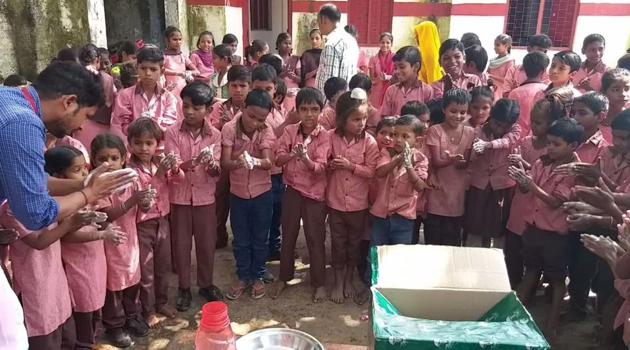 “Witnessing the collective hand-washing in school by tiny tots is very exciting. No one misses a single hand-washing step and all the children have lunch with clean hands,” says principal Mahendra Pratap Singh. “The practice has now become a habit. Now, they do not even allow their family members to have lunch without washing their hands,” he adds.