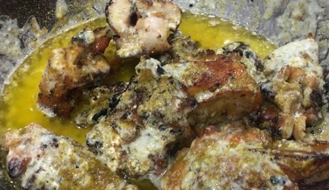 1. Heat oil in a frying pan and add ginger-garlic paste and chicken.
