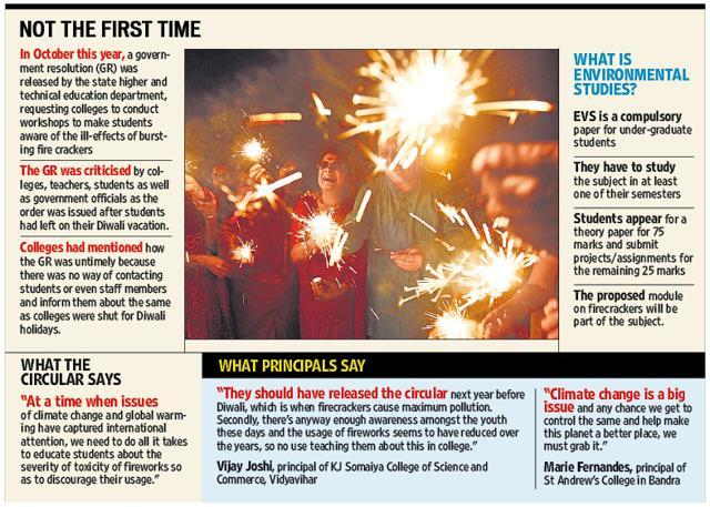 After the Climate Change Convention in Paris, the University Grants Commission (UGC), the body that regulates the working of universities, has asked universities across the country to include a module on the ill-effects of fireworks in the Environment Studies, which is a compulsory subject for all students.