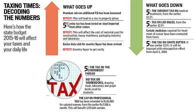 In his maiden budget of Rs 1,98,230 crore, Mungantiwar announced scrapping of the controversial Local Body Tax (LBT), fulfilling one of the BJP’s election promises. Citizens, however, may have to pay more for certain commodities as a surcharge would be imposed on the Value Added Tax (VAT) to compensate for the losses incurred from cancelling LBT.