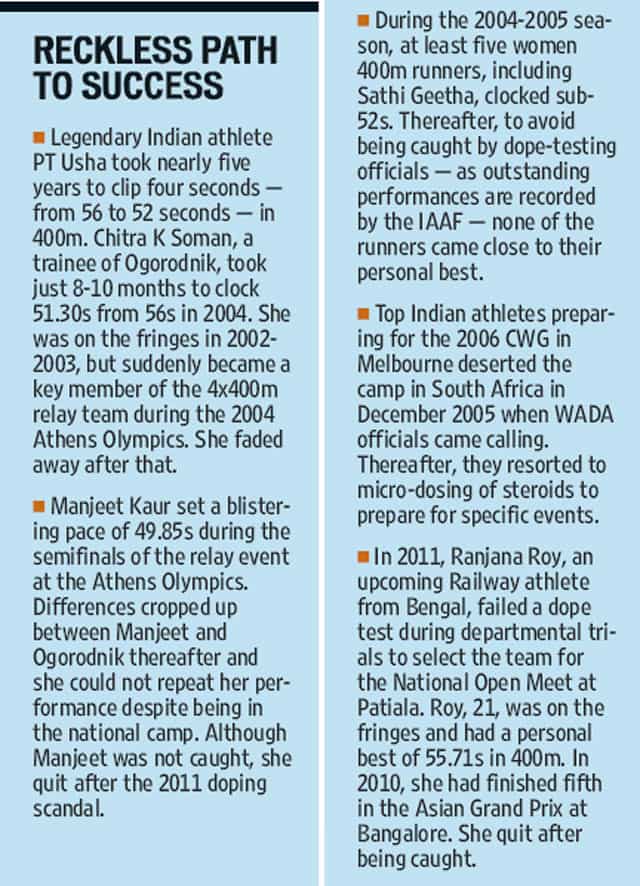 The federation believes that the Ukrainian was behind the gold-medal winning performance of the 4x400m relay team at the Incheon Asian Games. Sources say some of the relay team members were getting tips over phone from Ogorodnik on steroid micro-dosing.
