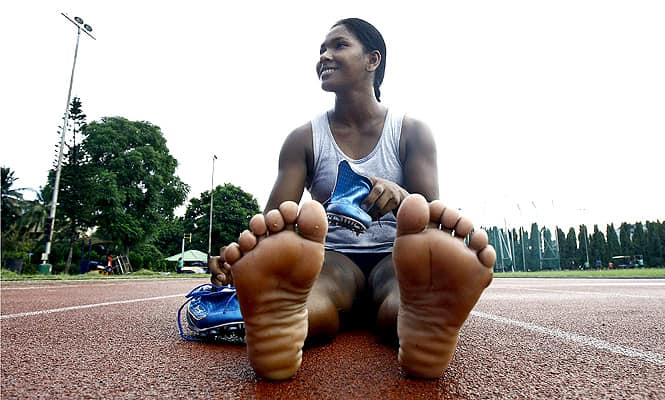 Born with six toes in each foot, the 18-year-old from a poor family in Jalpaiguri in West Bengal has been forced to run, jump and throw wearing shoes that have affected more than aiding her performance.