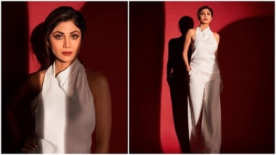 Shilpa Shetty proves less is more in all-white halter top and wide pants set