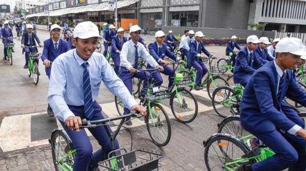 More than 100 residents and students of Bharati Vidyapeeth English Medium School rode on 200 PEDL bicycles deployed under the bicycle sharing scheme on Tuesday. This is the sixth phase of the smart city bicycle sharing scheme undertaken by the Pune smart city development corporation limited (PSCDCL).