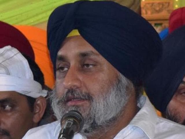 Claiming that Punjab chief minister Parkash Singh Badal had announced maximum compensation in the country for the state’s farmers, deputy CM Sukhbir Badal (HT Photo)
