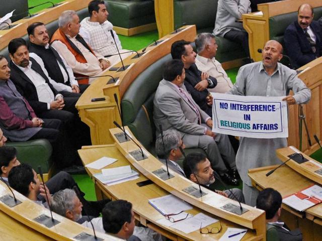 An independent legislator on Saturday continuously disrupted the first day of Jammu and Kashmir assembly’s autumn session as he accused the PDP-BJP government of carrying forward the agenda of the RSS.