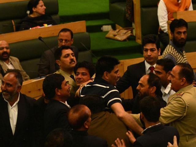 National Conference and Congress members disrupted the proceedings of the assembly when the question hour started, seeking a discussion on article 35A of the Indian constitution.