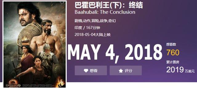 Prabhas and Rana Daggubati’s Baahubali 2 is set to release in China on May 4.