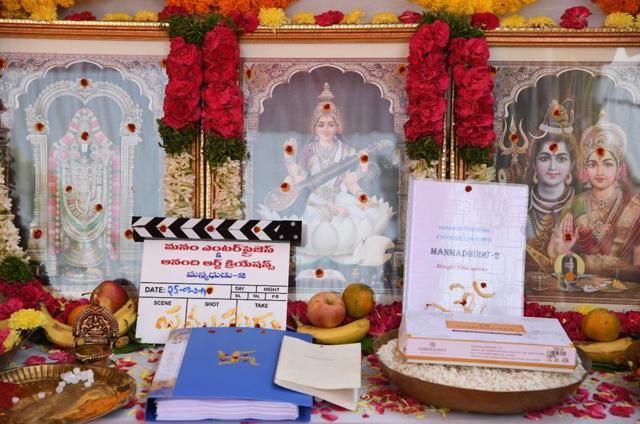 Nagarjuna’s wife Amala Akkineni and son Naga Chaitanya switched on the camera for the first shot of Manmadhudu 2.