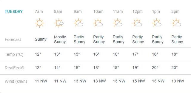 Just like Sunday, Tuesday too promises to be bright and sunny with scattering clouds providing some respite in between. The rain has left for good, making it ideal conditions to play cricket. The temperature is likely to be around 14-20 degree Celcius, it may come down slightly towards the evening.