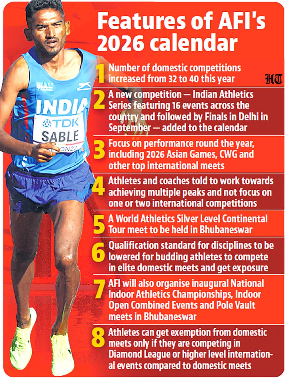 The Athletics Federation of India (AFI), therefore, has tweaked its domestic competition calendar with an aim to push athletes toward “multiple peaks” in a year and not focus on just one good performance or on peaking early in the season.