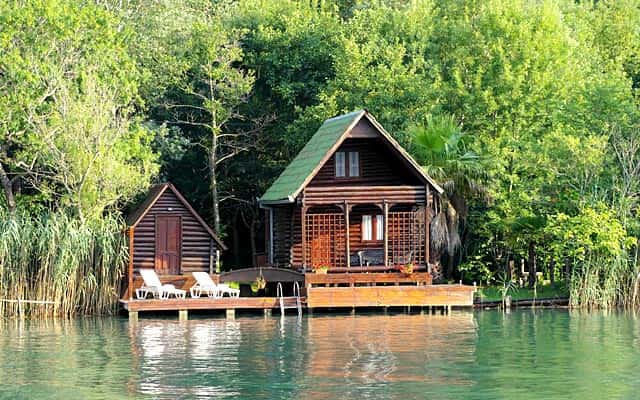 A wooden house along the lush Ada Bojana riverside in Montenegro