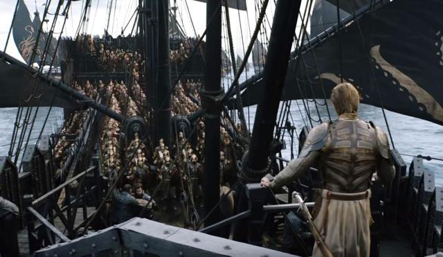 While he does look like the young Jaime from the first season, this definitely isn’t him. The blonde guy seems to be commanding a fleet of ships that bear a kraken as their sigil. That is House Greyjoy. These guys are most likely men of the Golden Company, following Euron Greyjoy’s to King’s Landing. There, they will join Cersei who plans to defeat Jon and Daenerys’ armies with their help.