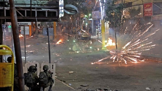 Palestinians clash with Israeli security forces in the city centre of the West Bank town of Hebron. (AFP)