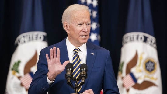 US President Joe Biden speaks at the State Department in Washington, DC. (Bloomberg)