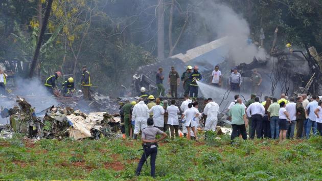 The Boeing crashed shortly after taking off from Havana, coming down in a field near the airport and sending a thick column of acrid smoke into the air.