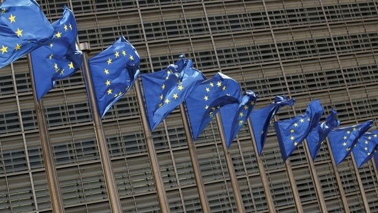 European Union flags flutter outside the EU Commission headquarters in Brussels, Belgium. (Reuters)