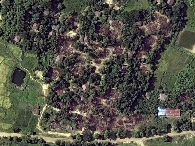 High-definition satellite images show 820 newly identified structures destroyed this month in five Rohingya Muslim villages in Myanmar’s troubled Rakhine state where the military is carrying out counter-insurgency operations, a human rights group said Monday.