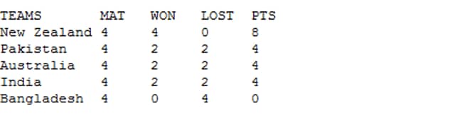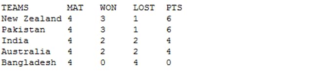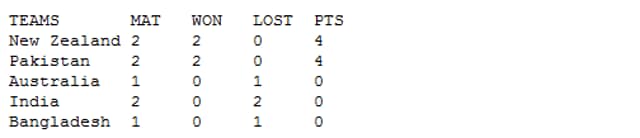 In this case Australia, Pakistan and India will be in a run-rate tussle. The final group stage points table will look like this: