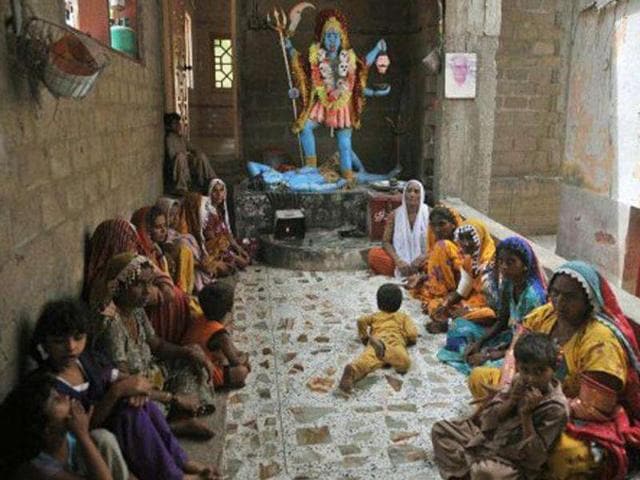 A file photo of Pakistani Hindus at The Shang Bhavan Temple in Maklei, in Thatta district, Pakistan.