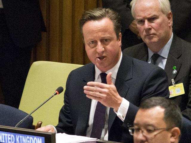 British Prime Minister David Cameron speaks during the Leaders' Summit on Countering IS and Violent Extremism at the United Nations General Assembly in New York. (REUTERS Photo)
